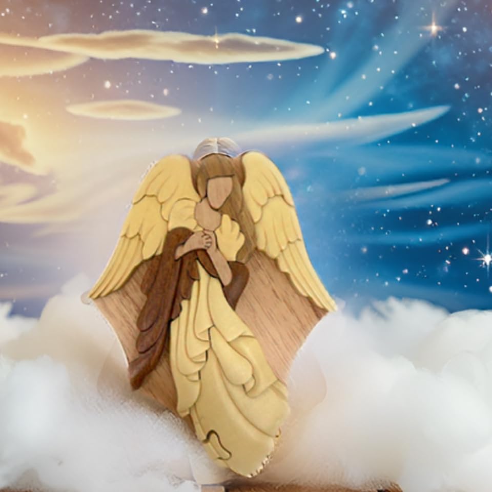 Angel, Handcrafted Wooden Puzzle Box, All Natural Intarsia Wood Art, Secret Compartment with Key