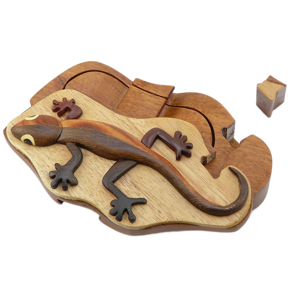 Handcrafted Gecko Wooden Puzzle Box
