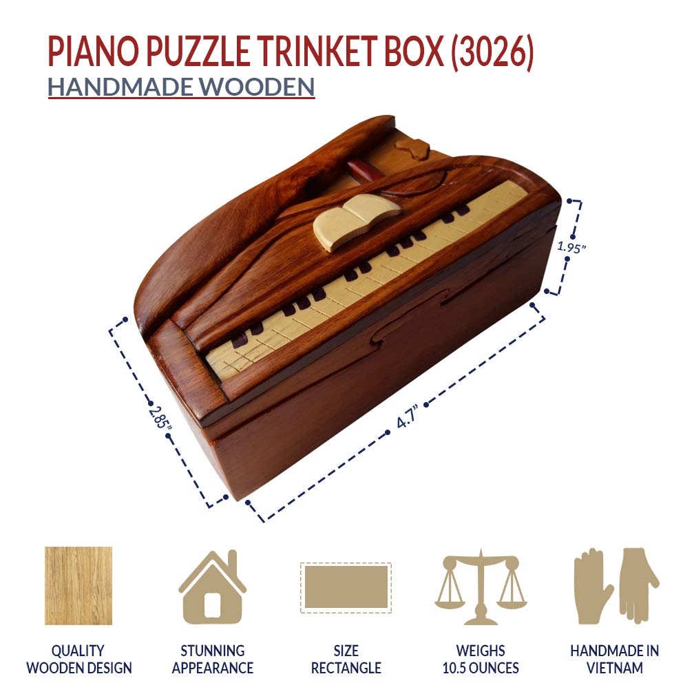 Handmade Wooden Art TRICK SECRET Piano Jewelry Puzzle Trinket Box (3026)
