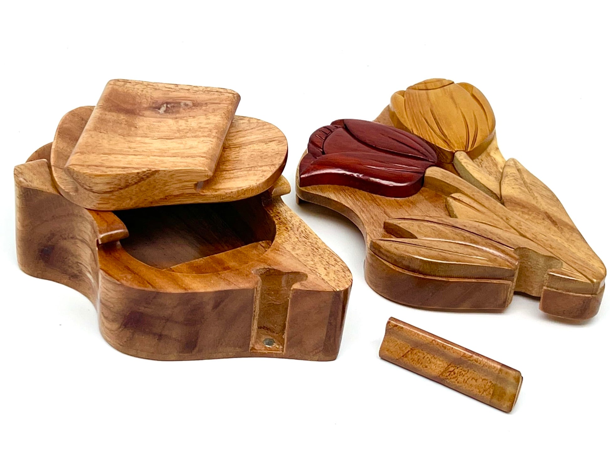 π Handcrafted Artistry: This intarsia wood puzzle box is handcrafted by Vietnamese artisans, featuring a vibrant spring tulips design and natural charm of wood.