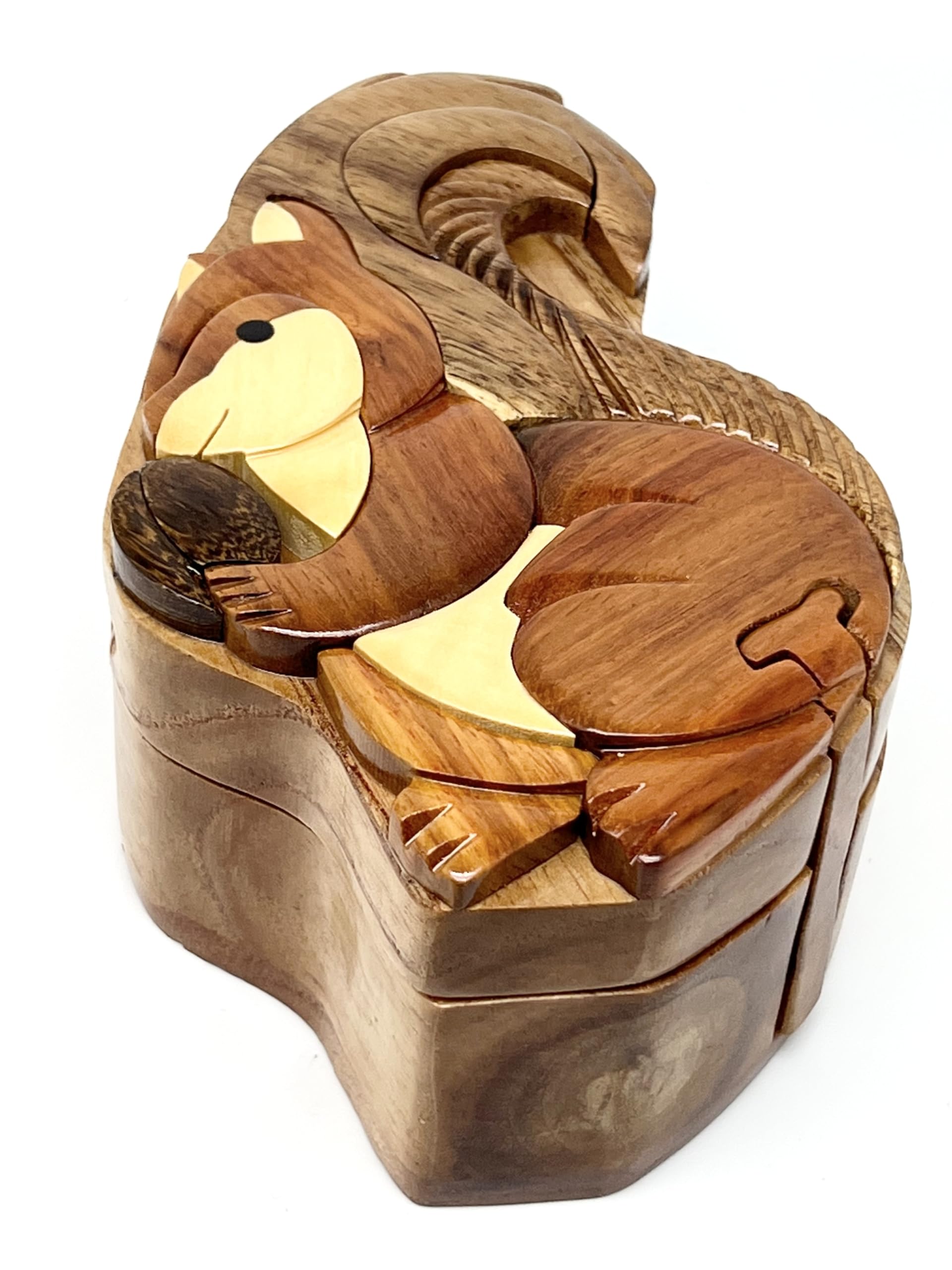 Squirrel Wooden Puzzle Box with Secret Compartment, Unique Intarsia Wood Art, Handcrafted from All-Natural and Sustainable Wood